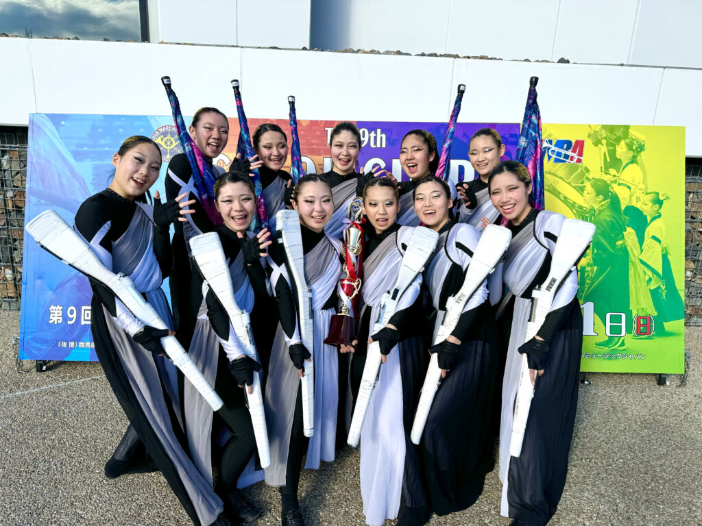 群馬県・高崎アリーナにて開催された第9回カラーガード全国大会および第9回マーチングパーカッション全国大会では、カラーガード部門において4年連続の全国大会出場を果たし、本校としては初となる銀賞を受賞しました。